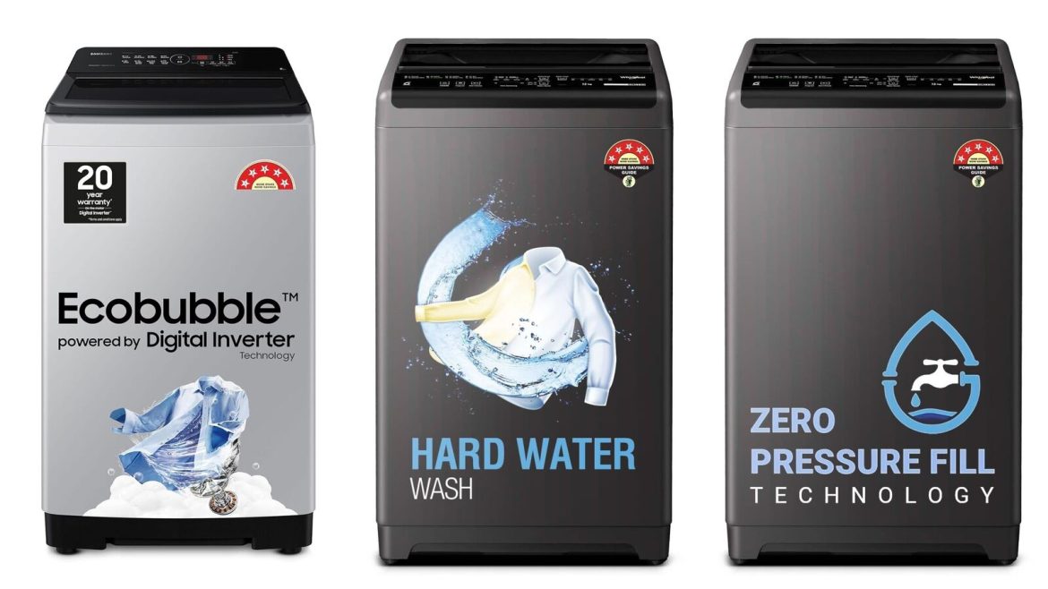 1. Samsung 8 kg, 5 star, Eco Bubble Tech, Digital Inverter Motor, Soft Closing Door, Fully-Automatic Top Load Washing Machine
