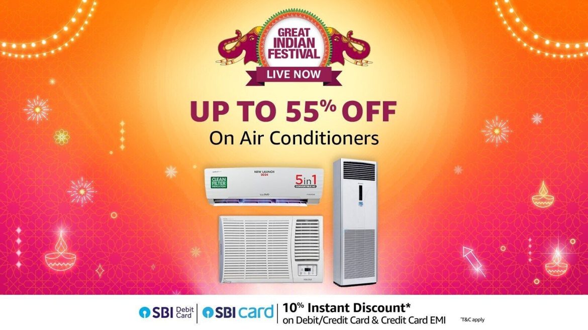 The Amazon Great Indian Festival Sale 2024 is here, bringing you unbeatable offers on a wide range of cooling solutions. If you want to upgrade your home’s air conditioning, now is perfect! With massive discounts of up to 55%, you can grab the best deals on top brands of 1 ton, 1.5 ton, and 2 Ton ACs, as well as high-performance air coolers. Whether you’re preparing for the upcoming summer or simply need an upgrade, this sale has you covered. Don’t miss the chance to enjoy cool comfort while saving big. Shop now and transform your space into a cool haven with the latest energy-efficient models!
